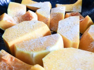 - Firsts things first you want to take your butternut squash, remove the skin and seeds, cut in to cubes, place on a tray, spray with little Fry Light, lightly season and cook for around 35-40 minutes until soft.