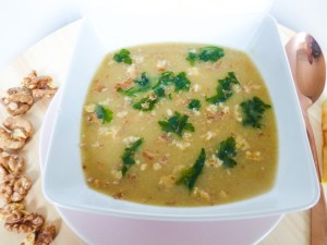 - To serve chop a little parsley on top, also this soup goes great with toasted walnuts crumbled on top. You could even take it one step further and whisk double cream stir in the crushed walnuts to the mixture and swirl in to the soup.