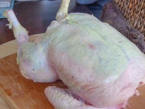 - Take you chicken and you want to loosen the skin from the meat, be careful not tear the skin.